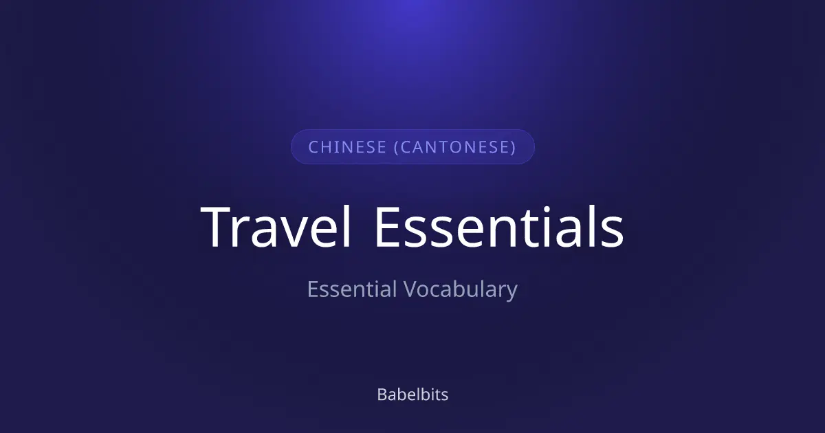 Master travel essentials in Chinese (Cantonese). Critical phrases for airports, hotels, and navigation. Don't get lost. Includes 粵語 translations and audio.