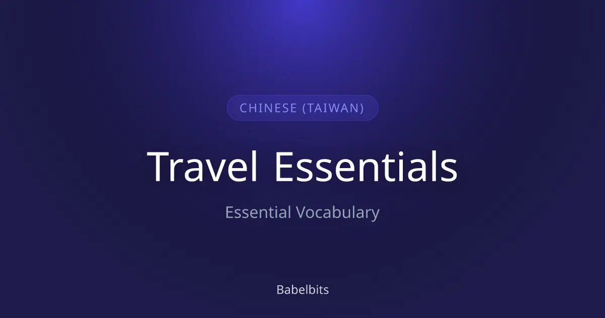 Master travel essentials in Chinese (Taiwan). Critical phrases for airports, hotels, and navigation. Don't get lost. Includes 中文 (Taiwan) translations and audio.