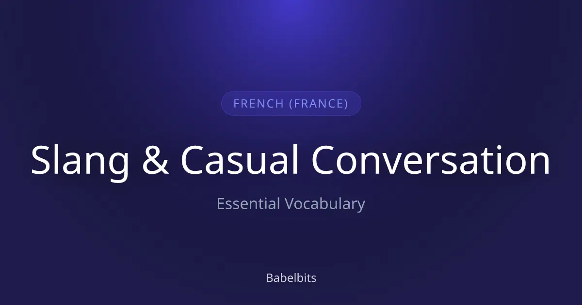 Master slang & casual conversation in French (France). Speak like a real person, not a robot. Filler words, reactions, and street slang. Includes Français translations and audio.