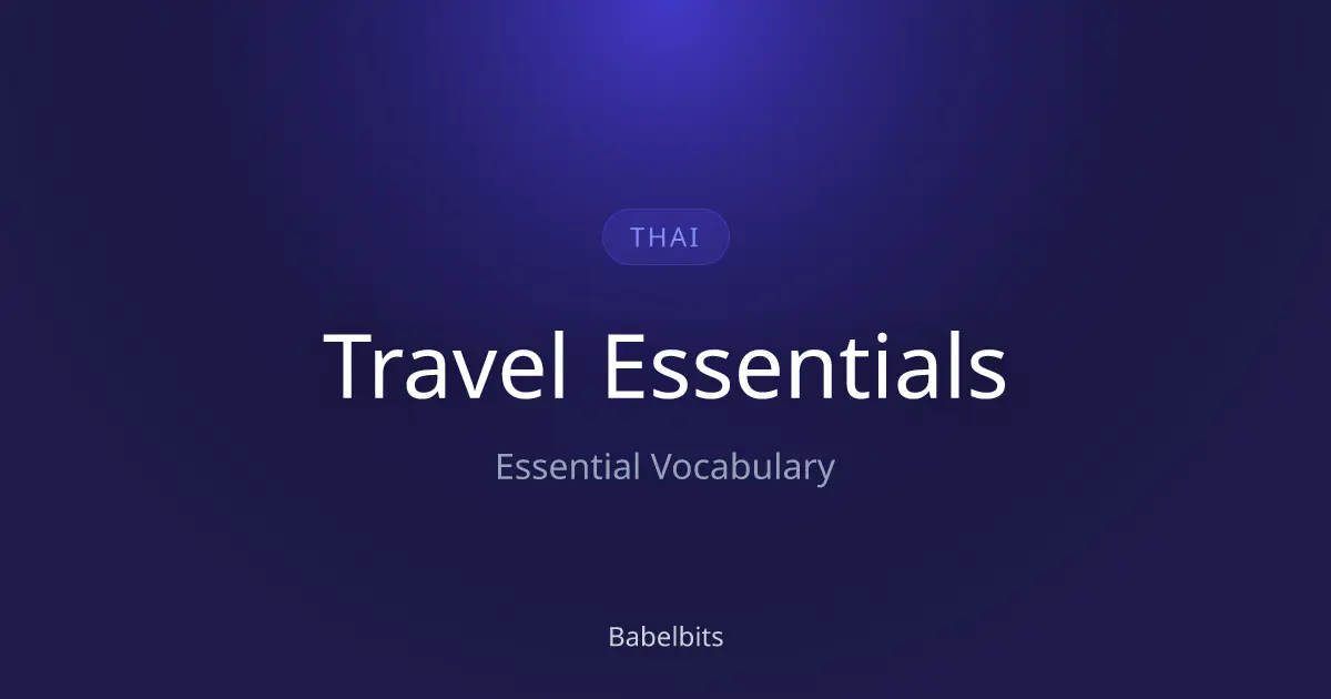 Master travel essentials in Thai. Critical phrases for airports, hotels, and navigation. Don't get lost. Includes ไทย translations and audio.